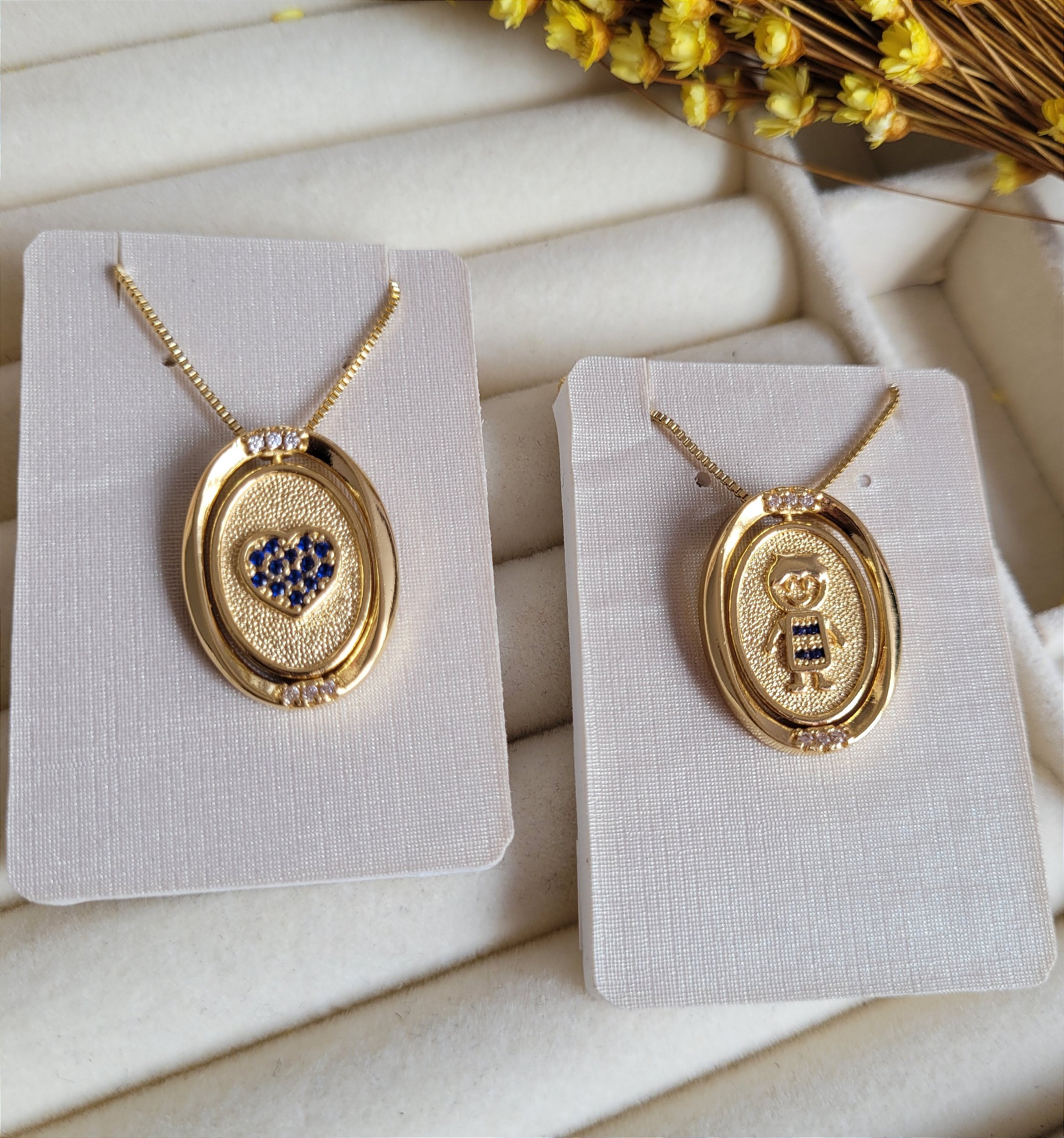 Colar Cravejado Menino Dupla Face - Semijoia 18k